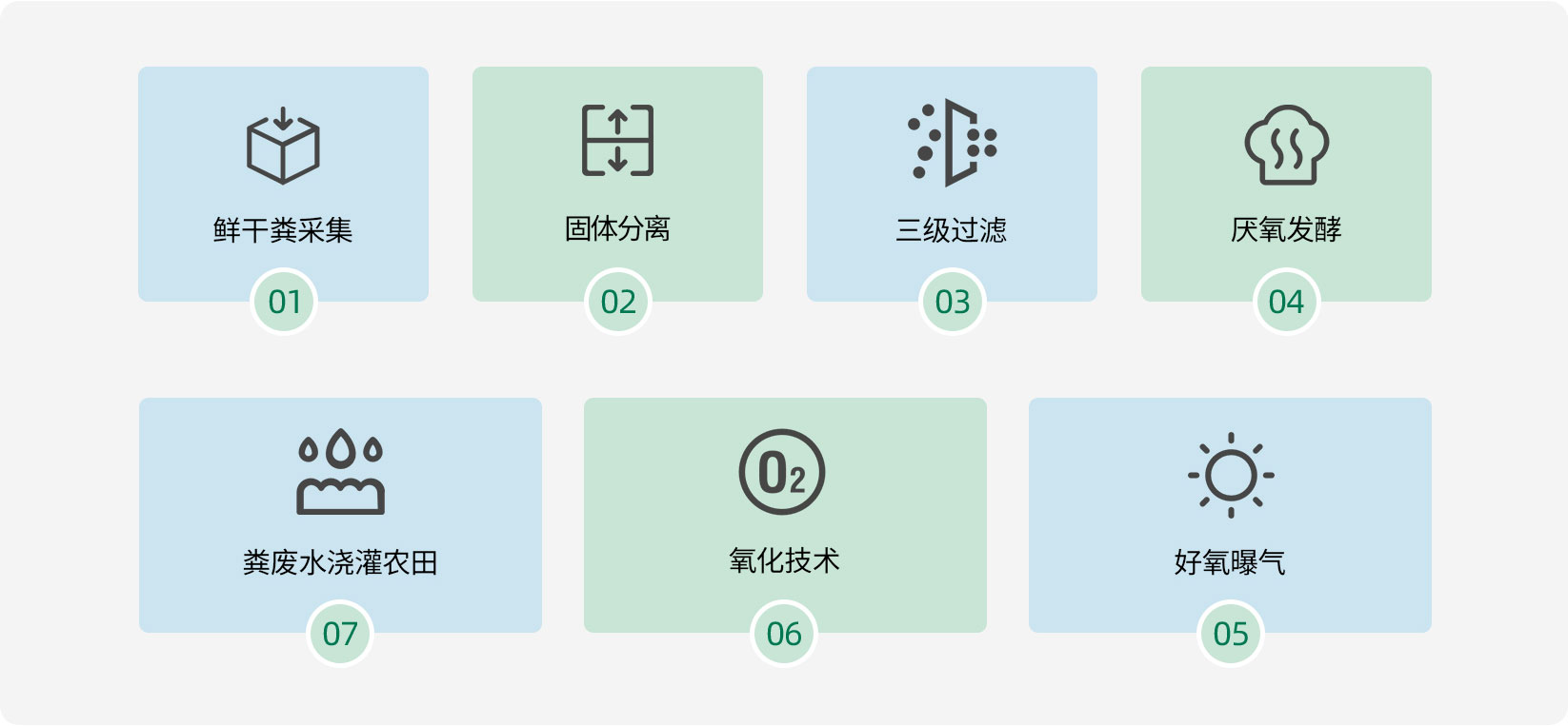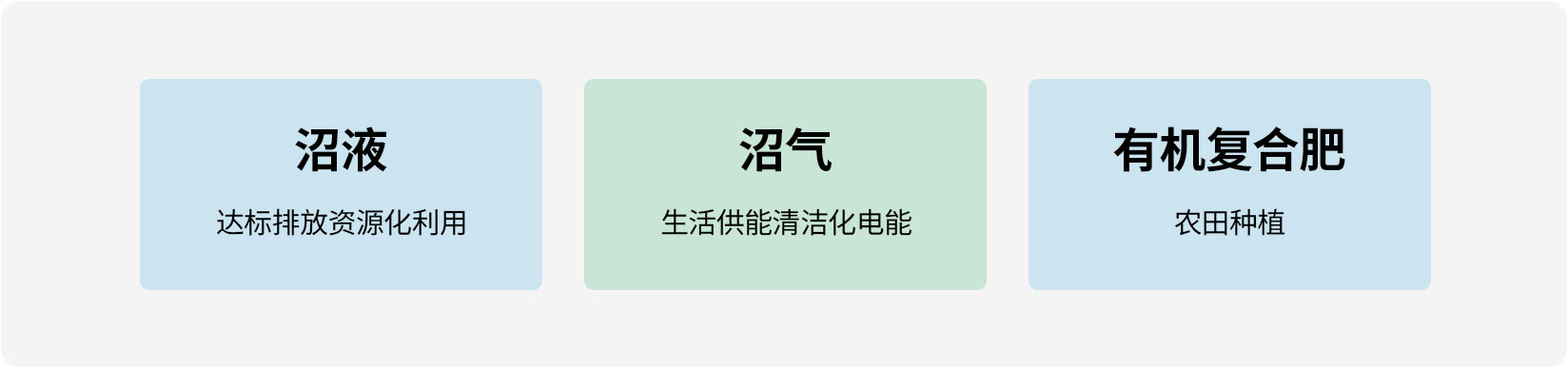 對污水通過厭氧、好氧等工藝處理后,出水水質達到國家排放標準,固體糞便通過堆肥等方式處理后,再利用。